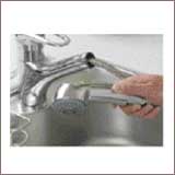 レバー操作ひとつで湯温、温量調節ができるシングルレバー混合水栓を採用。シャワーヘッドがノズルで引き出せるため、 広い範囲で使用できます。(ドイツ・グローエ社製) |